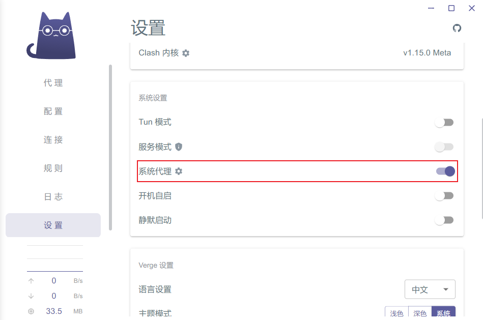 - 配置订阅:添加订阅,开启系统代理,详细教程可以参考Clash Verge使用教程